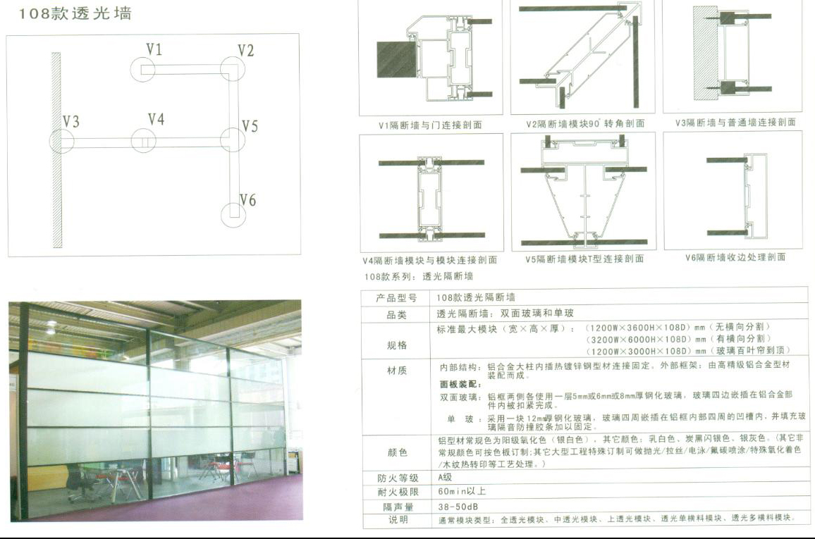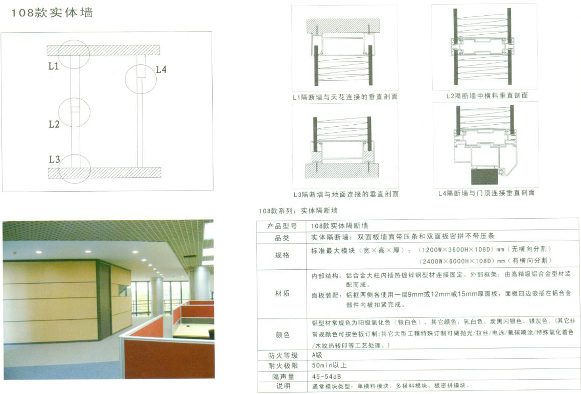 108款高隔斷,厚度為108mm,它又分為108款雙玻隔斷和108款雙面隔斷,是目前東方華奧家具主推產(chǎn)品。面板跨度最大可達(dá)2400mm,玻璃跨度最大可達(dá)3200mm,高度可以做到6000mm,是東方華奧家具隔斷墻系列里跨度分割和高度分割最大的一個(gè)系列。